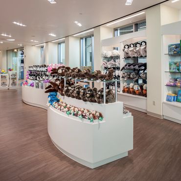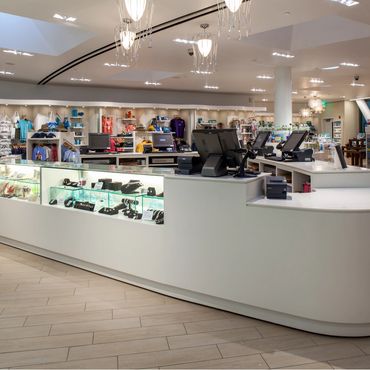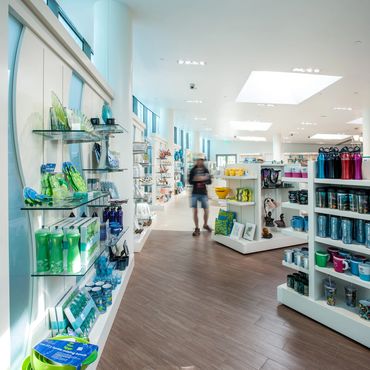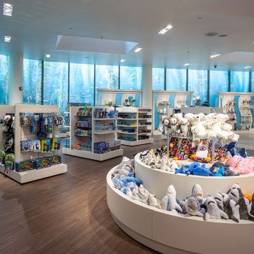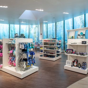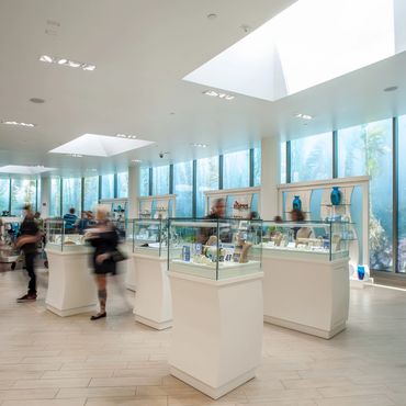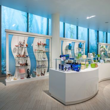 An earth-friendly gift store for an Aquarium that practices sustainability and species preservation, this gift store offers items created by local artists and features artwork made with recycled materials. We partnered with our marine friends to expand the store’s square footage and increase energy efficiency. And while it may look like this space is underwater, that is just another design team miracle. Underwater photographer Jim Hellemn captured the glass photo mural to put the final touches on this unique experience.